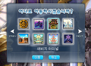 그 후 판테온 대신전 내부에서 오른쪽 디멘션 게이트 메이플 월드 이동을 클릭합니다.